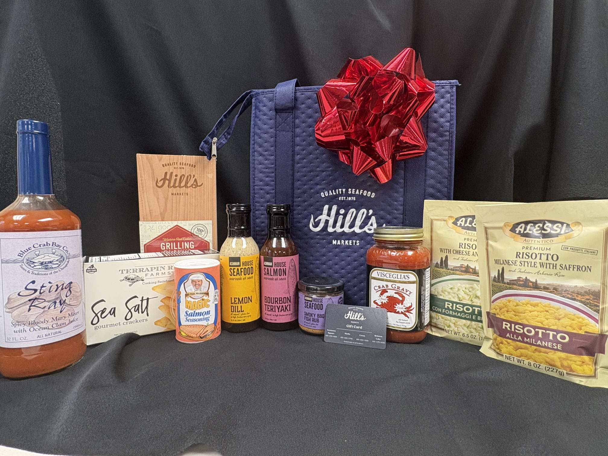 6) Hill’s Quality Seafood (Glen Mills, Exton, Newtown Square) $100 gift card, 32 oz Sting Ray Spicy Bloody Mary Mixer with Ocean Clam Juice, Sea Salt gourmet crackers, 12 oz. Bourbon Teriyaki Salmon Marinade & Sauce, 12 oz Lemon Dill Seafood Marinade Sauce, 8 oz Risotto Alla Milanese with Saffron rice, 6.5 Risotto Con Formaggi E Broccolini with Cheese rice, 25 oz Crab Gravy with real crab (natural, no preservatives), 4 oz Smoky BBQ Fish Rub (gf), 7 oz Magic Salmon seasoning, and 2 cedar grilling planks in a quilted bag. www.hillsqualityseafood.com (value $200; starting bid $95).