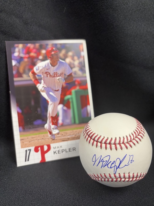 1) Philadelphia Phillies baseball player #17, Max Kepler signed baseball and photo. (value $70; starting bid $30).