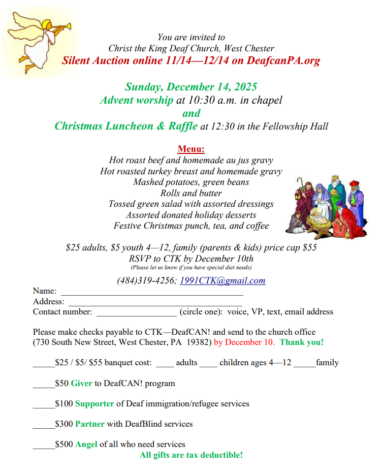 Come and join us on Sunday, December 14th for delicious luncheon and raffle. RSVP is requested by December 11th to make sure that we have enough food for everyone.