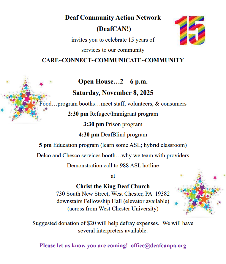 Please come and join us in celebrating 15 years of services on Nov. 8th from 2–6 p.m. Past Event Posted on October 31, 2025 By Connie Wallace